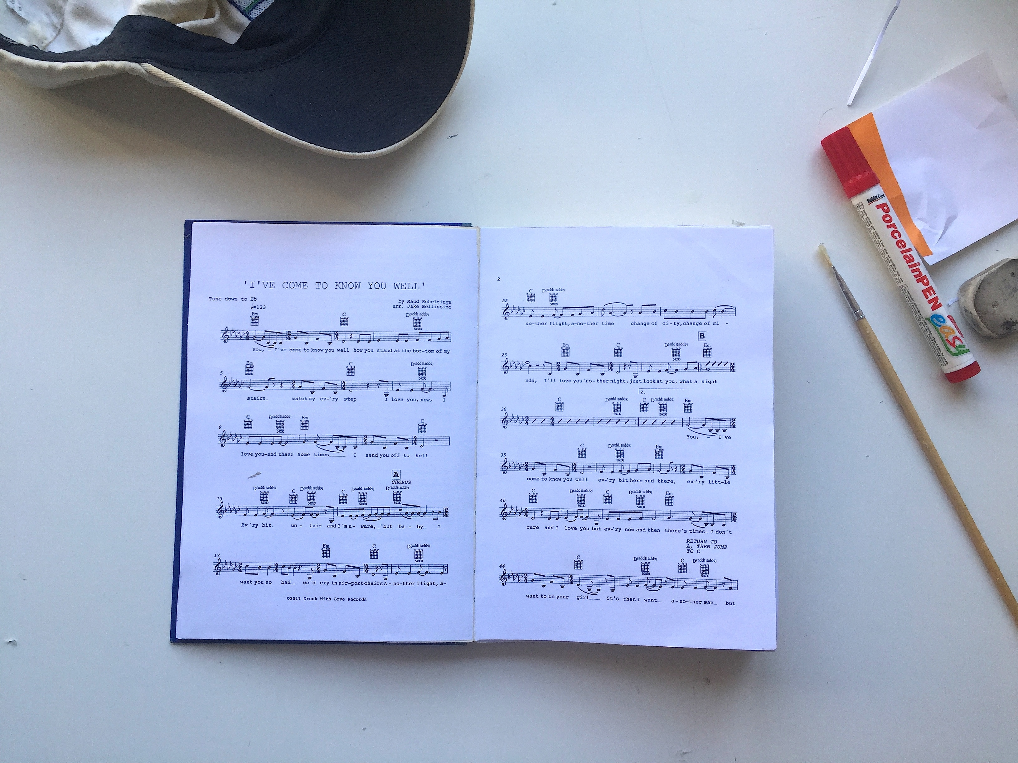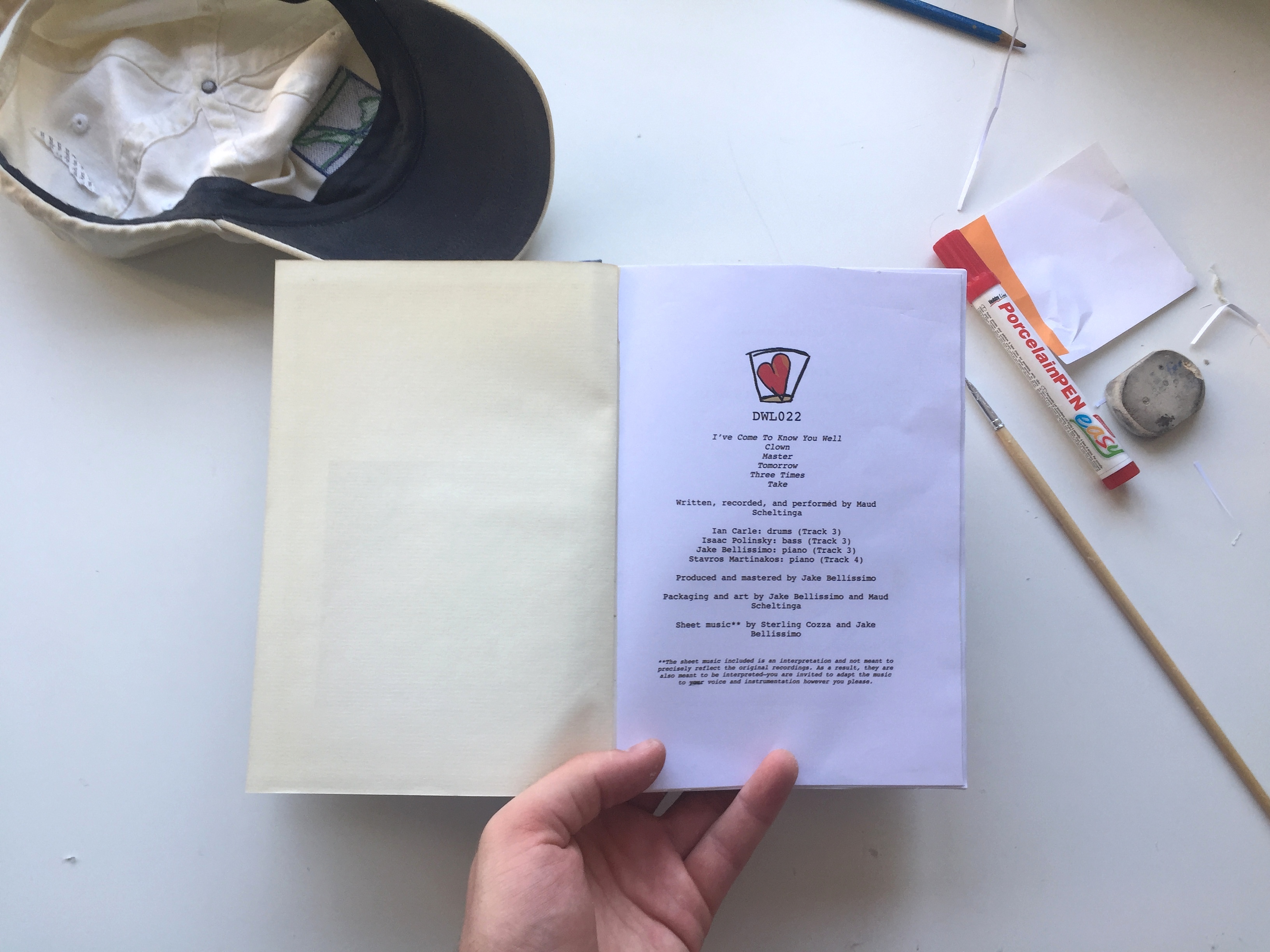 This literary theme is continued in the very special CD package put together by Drunk With Love. The music will come in a second hand book, with spaces carved out for sheet music and the CD. You can order it now from Drunk With Love Records, or digitally form the Maud Scheltinga Bandcamp page.